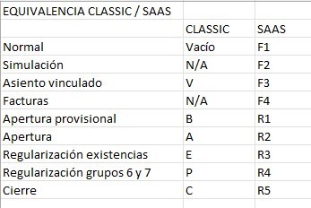 Utilizaremos las claves de tipo de asiento tal como vienen en Marfil Classic, el proceso automáticamente traducirá a la nueva nomenclatura.