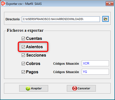 Finalmente se indicará el delimitador (usualmente el punto y coma) y la serie del diario dónde se importará.